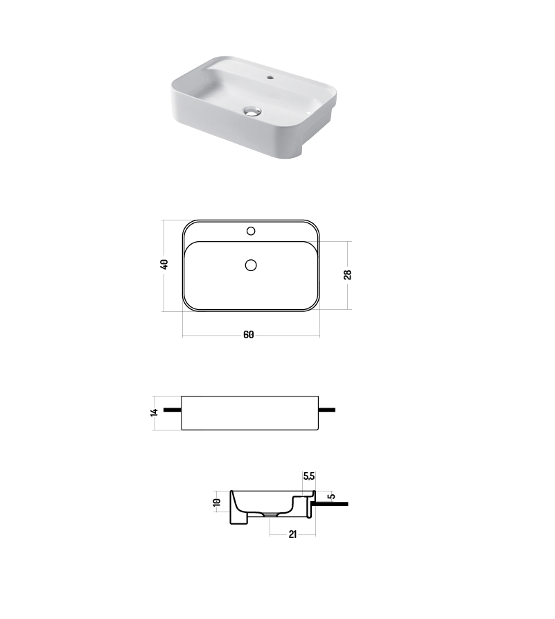 SEMI-RECESSED WASHBASIN 60X38
